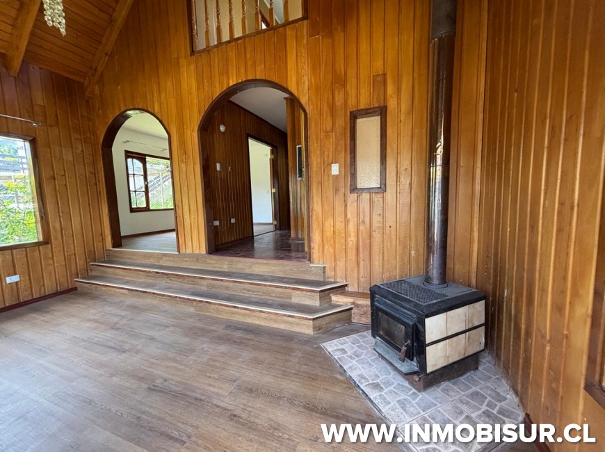 Primer piso, luminoso living con combustión lenta, comedor separado, cocina amoblada y equipada con horno y encimera, baño visita, 3 dormitorios con baño en suite, bodega y patio techado.