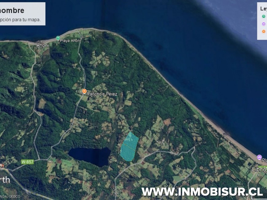 Campo de 6 hectáreas en el sector Lebun Alto comuna de Queilén, cercano a Laguna Melli, playa Lelbun.