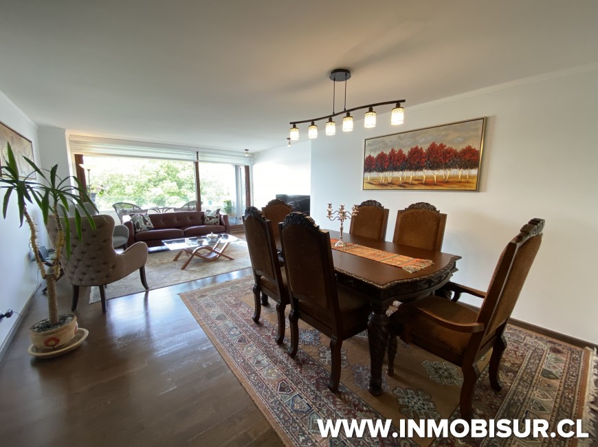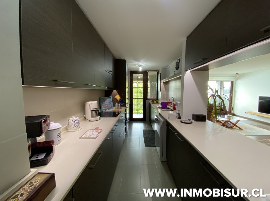 Departamento de 125 m2 y 4 m2 de terraza, cuenta hall de acceso, 3 dormitorios, principal en suite y salida a terraza con maravillosa vista, 2 baños adicionales, uno de visita. Cocina amoblada y equipada con encimera, horno, microondas y campana, loggia con ventilación y gran living comedor con salida a terraza.