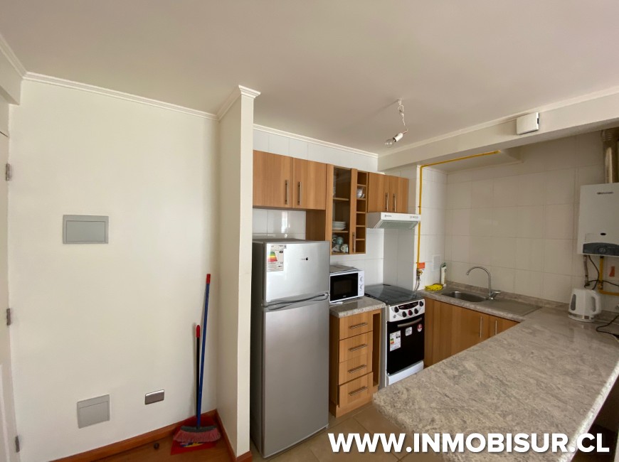 Departamento amoblado ubicado en tercer piso. Su distribución interior contempla living comedor, cocina americana amoblada y equipada, 1 dormitorio y 1 baño.