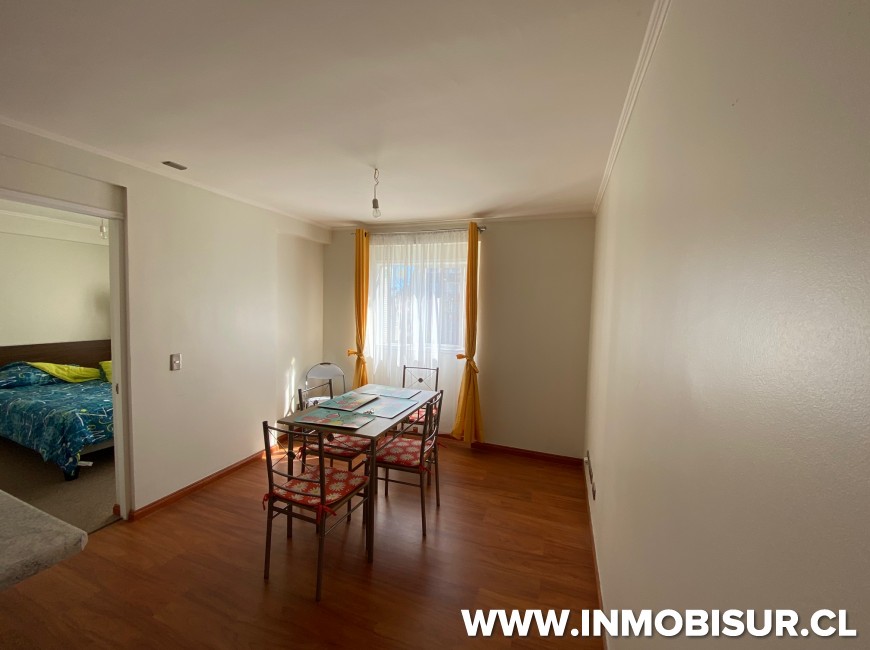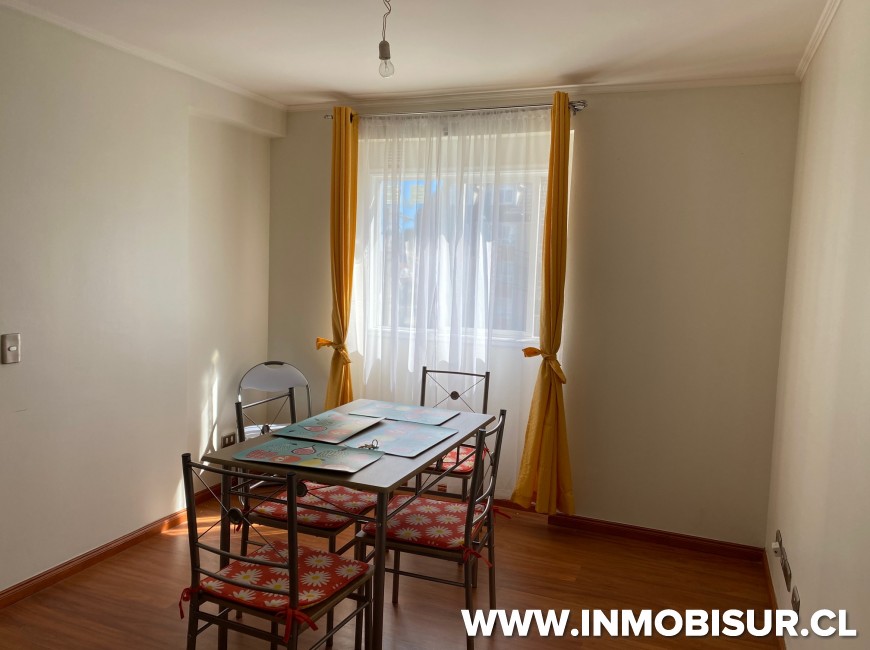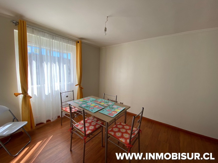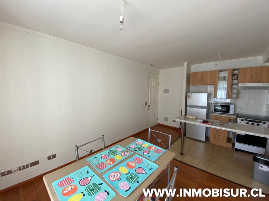 Amoblado con refrigerador, cocina, microondas, hervidor, loza para 6 personas. Cama matrimonial, comedor para personas.