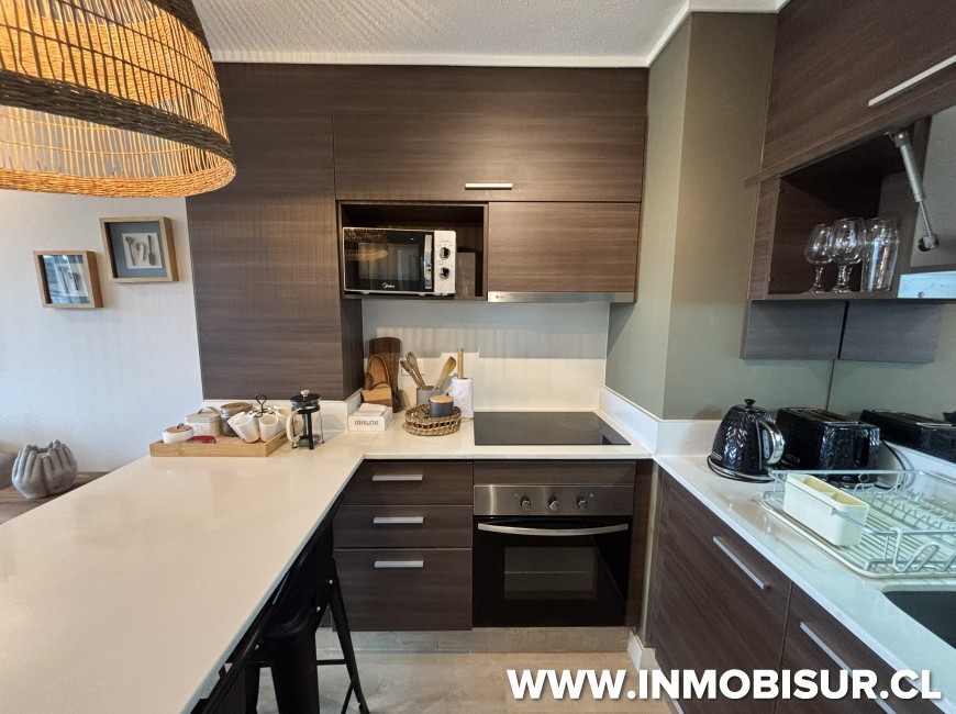 Cuenta con 3 dormitorios, principal en suite y 2 baños, living comedor con salida a gran terraza y moderna cocina integrada y equipada con encimera vitrocerámica, horno y campana, cubiertas de cuarzo. Amplia terraza con vista linda vista al lago Llanquihue y a los volcanes. Sistema de alarma.