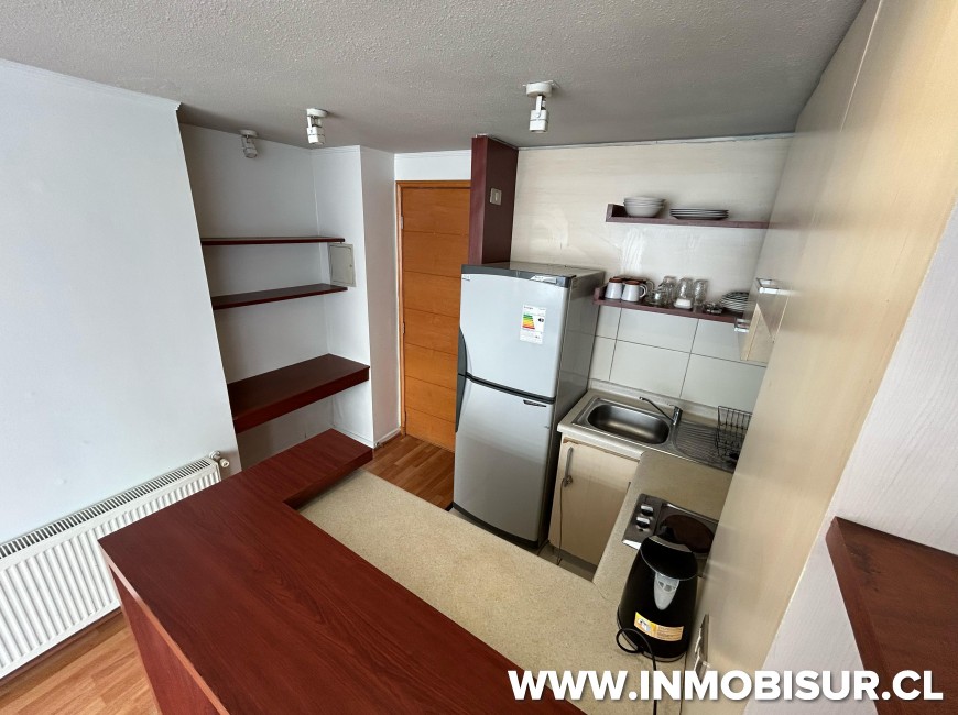 Posee un living comedor con cocina incorporada amoblada y equipada con horno, encimera y campana, dormitorio con baño en suite y walking closet.