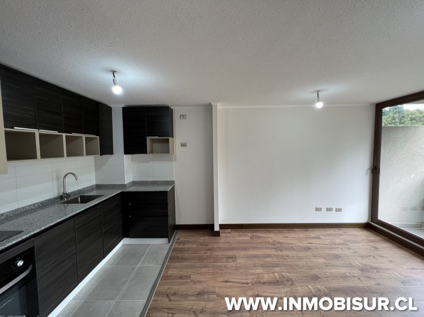 Cuenta con 54 m2 + 3,5 m2 de terraza. Cocina integrada amoblada y equipada con encimera, horno y campana, mesón con cubierta de granito. Ventanas termopanel.