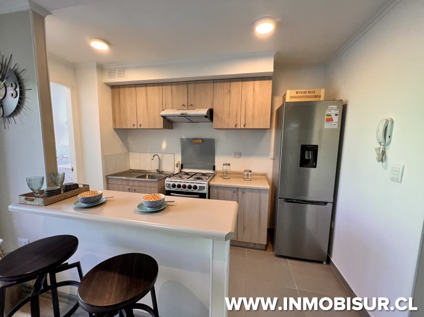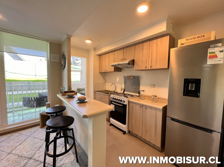 Ventanas termopanel en todo el departamento, piso flotantes, muebles de cocina, campaba, loggia con lavadero y espacio para instalar la lavadora, closet en todos los dormitorios con puertas.