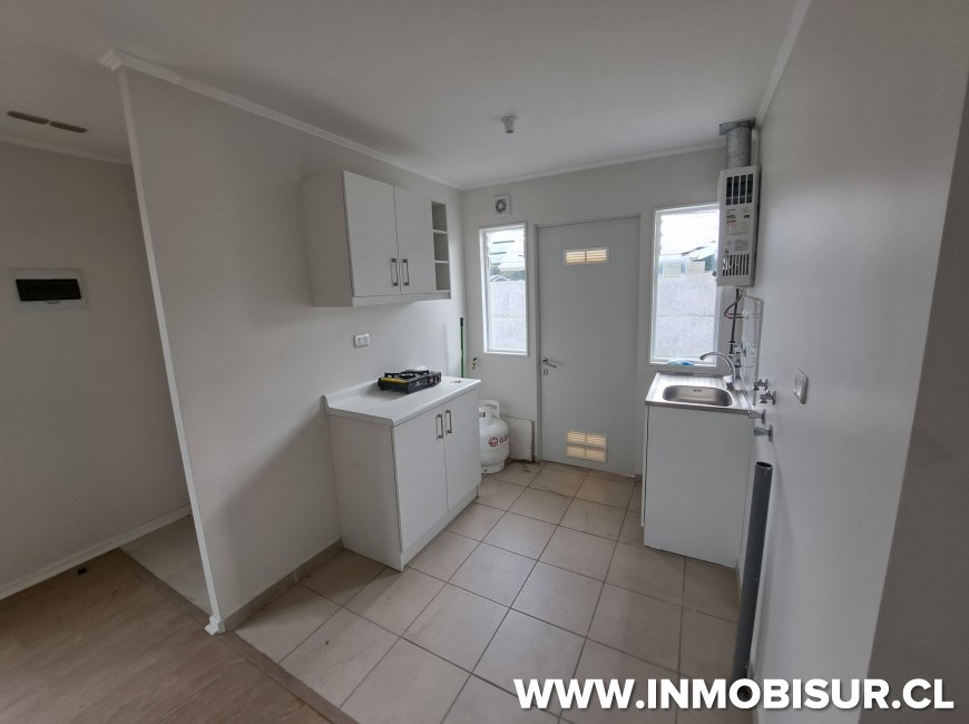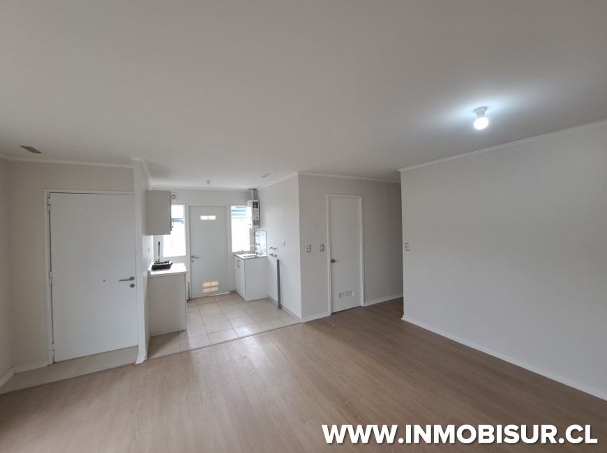 La casa es de un piso y cuenta con living comedor, cocina abierta solo con lavaplatos y calefont, tres dormitorios amplios y un baño.