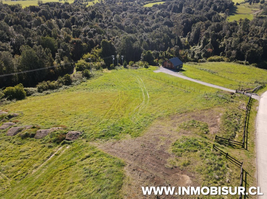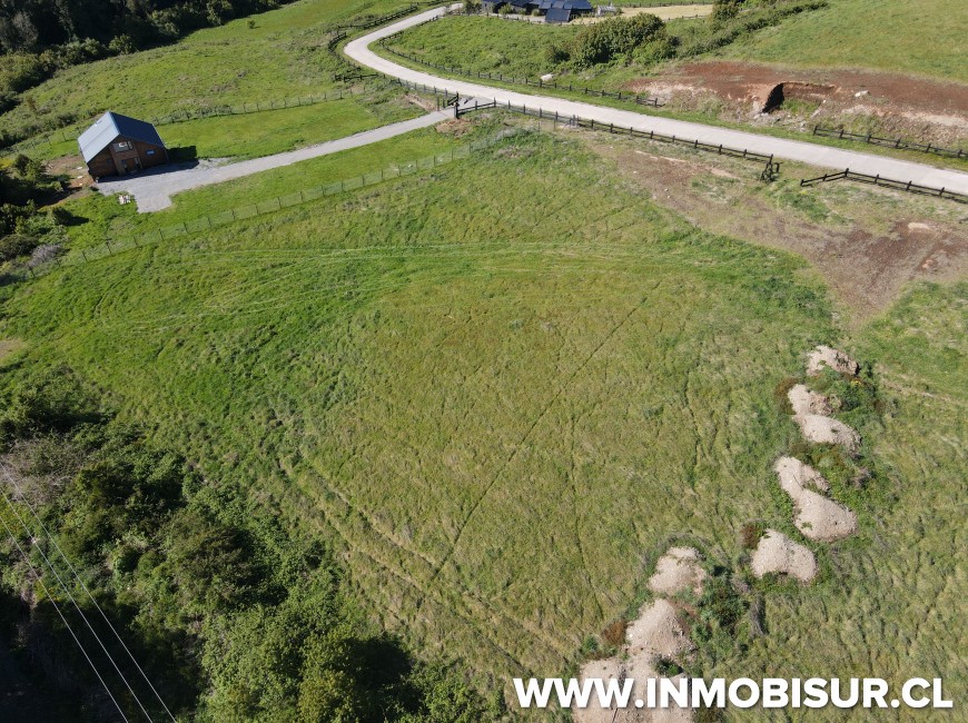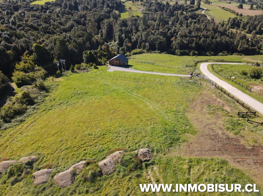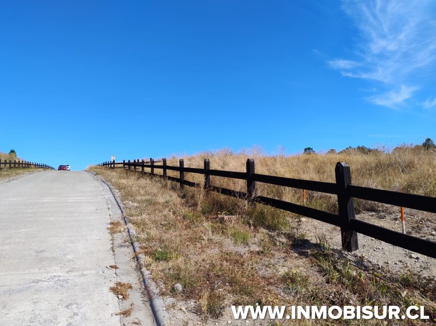 Parcela de 5.040 m2 con lomaje. El loteo cuenta con caminos interiores pavimentados, urbanización subterránea, portón de acceso estilo alemán con acceso controlado, punto limpio en la entrada del loteo y bosque nativo de conservación.