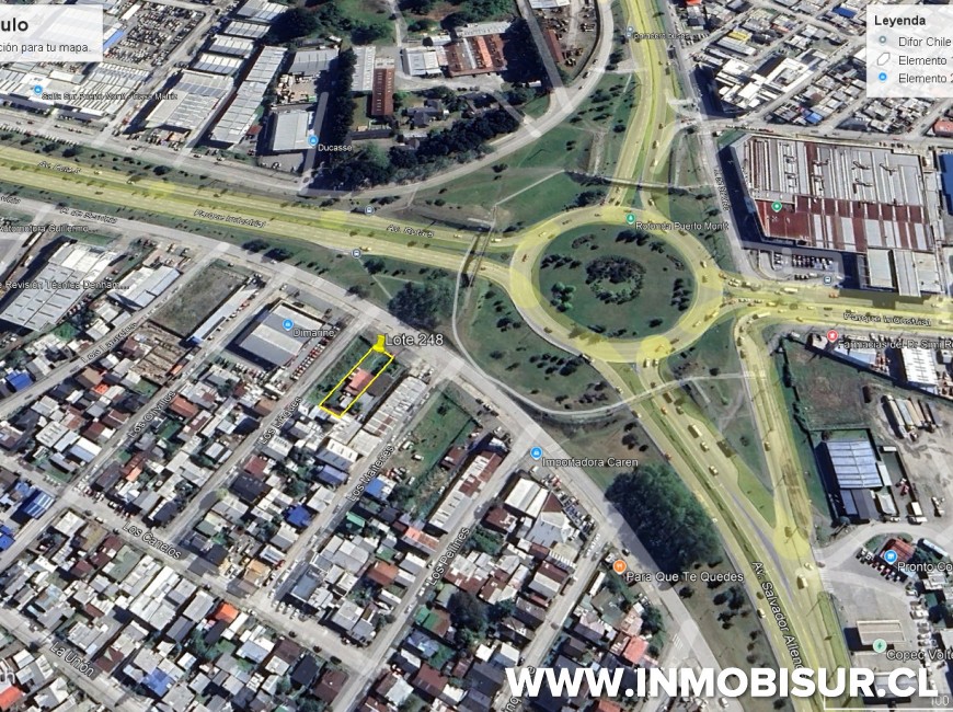 Sitio urbano en excelente ubicación comercial, cercano de empresas como Dimarine, Difor y planta de revisión técnica, a metros de la rotonda para salir a la Ruta 5 Sur, tanto para Puerto Varas (norte) o a Pargua (sur).