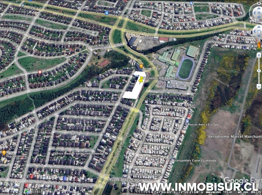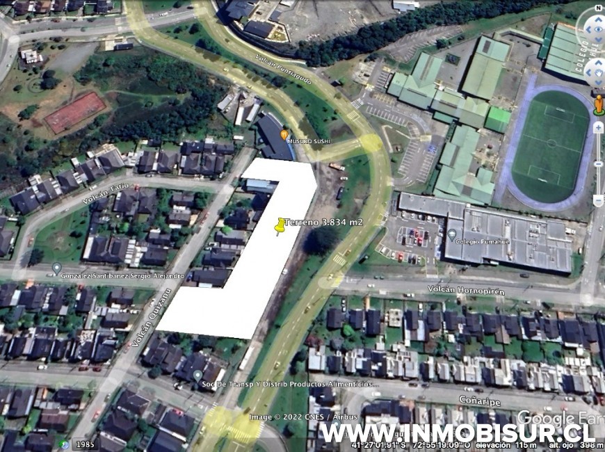 El terreno se emplaza en sector colindante a conjuntos habitacionales y vecinos al colegio Pumahue y Strep Center.