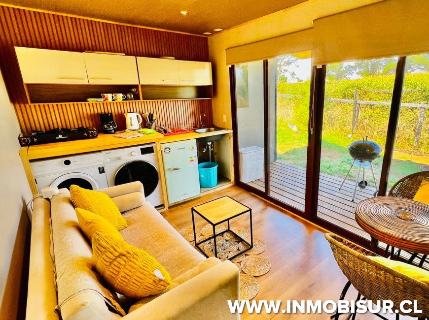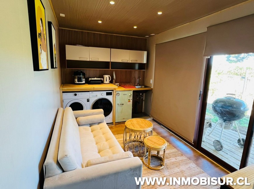 En arriendo linda Tiny House completamente equipada en Condominio Rancho Lomas Verdes, cuenta con excelente equipamiento, siendo uno de los mejores de Puerto Varas por su plusvalía y urbanización.
