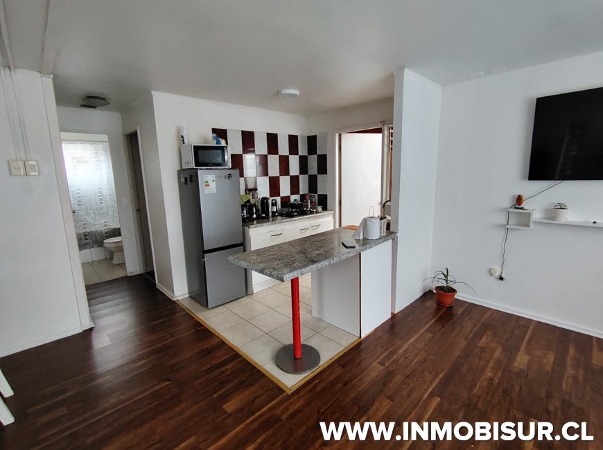 La propiedad cuenta con 2 dormitorios y un baño completo con tina. Su living-comedor dispone de calefacción a combustión lenta, ideal para mantener un ambiente cálido durante todo el año. La cocina, de concepto abierto, se integra armoniosamente a los espacios, brindando mayor amplitud y funcionalidad.