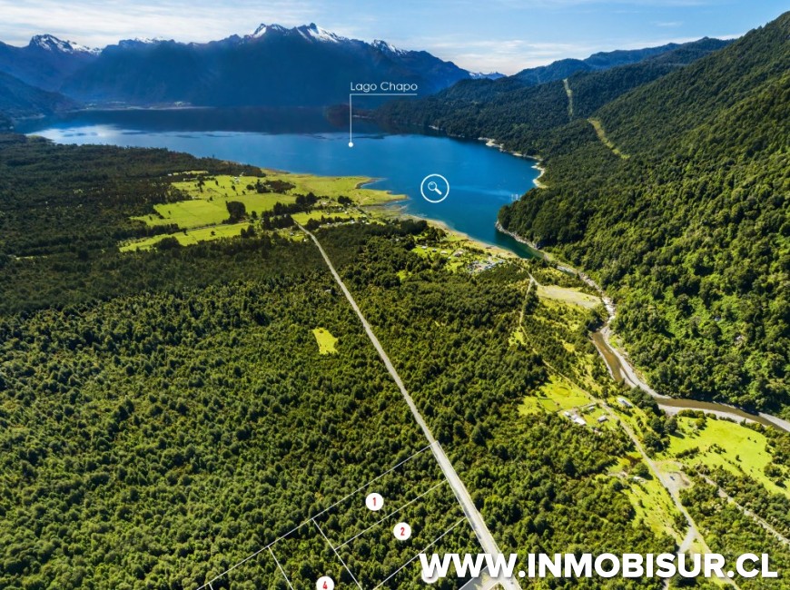 Hermosa parcela emplazada a pocos metros del Lago Chapo, acceso por la carretera austral y ruta V-65, a solo 25 minutos de Puerto Montt, a 5 minutos de la Reserva Nacional Llanquihue y a 15 minutos del Parque Nacional Alerce Andino.