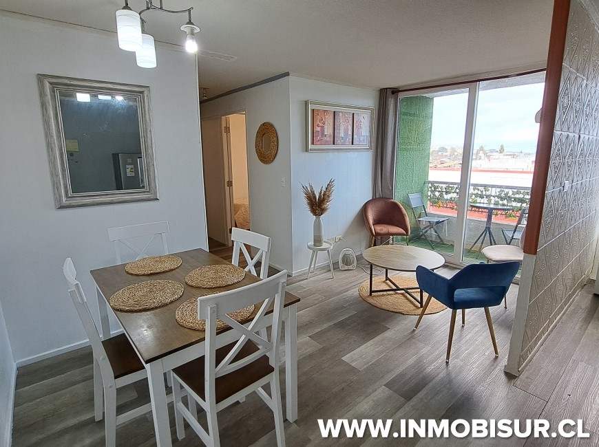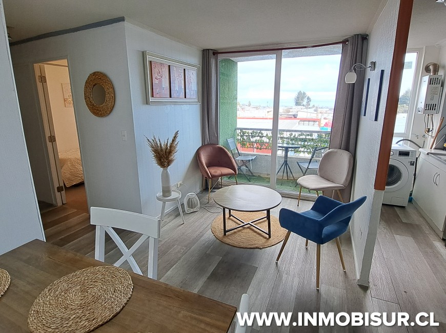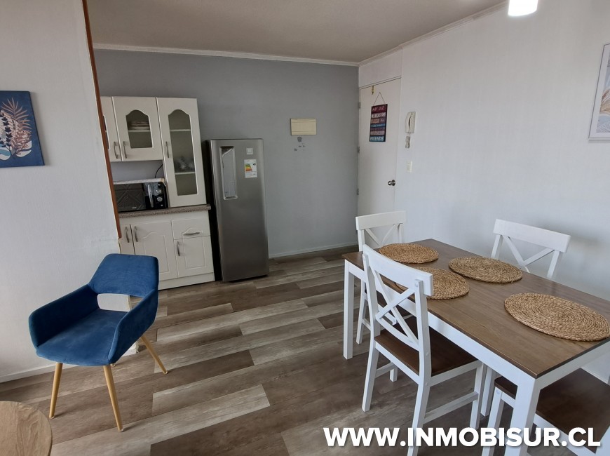 El departamento esta completamente amoblado y se distribuye en Living comedor con cocina incorporada, loggia, un baño, dormitorio principal amplio y dormitorio familiar.