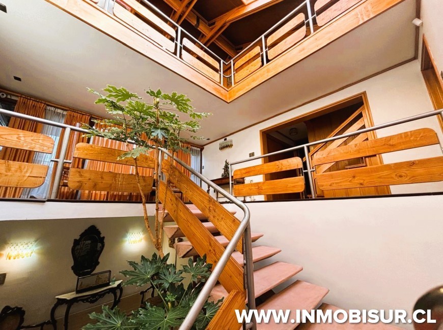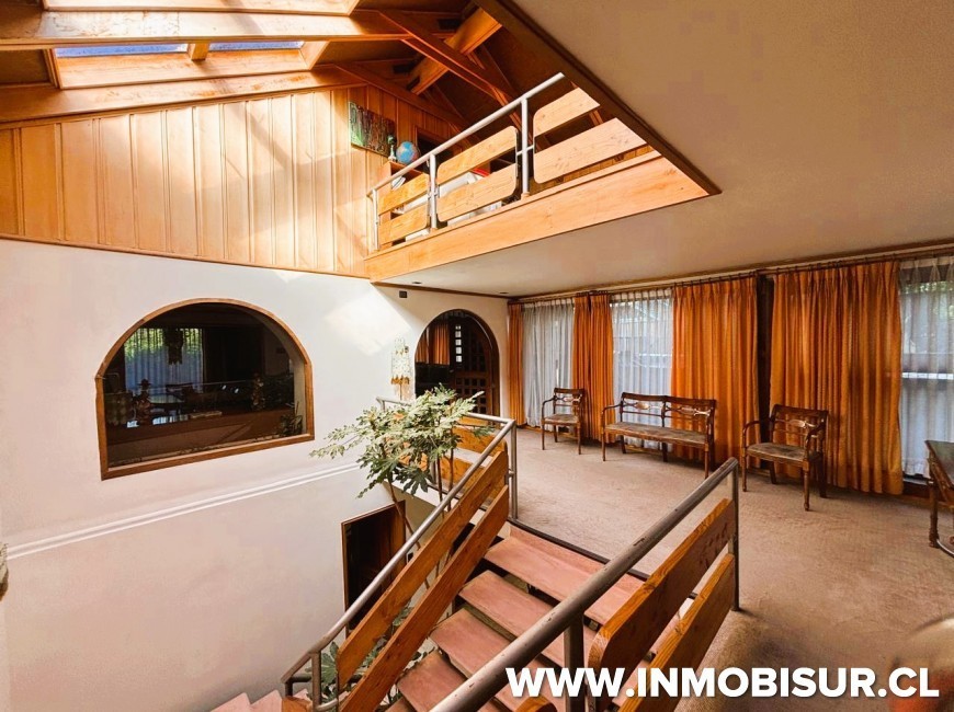 Segundo nivel posee un hall amplio de distribución que lleva a un lado a un living comedor amplio, separado por una chimenea de piedra, que puede ser usado como área común con salida a una terraza, una cocina amoblada que conecta con el área de servicio a través de una escalera de caracol y al patio de la propiedad, 4 privados amplios y 2 baños.